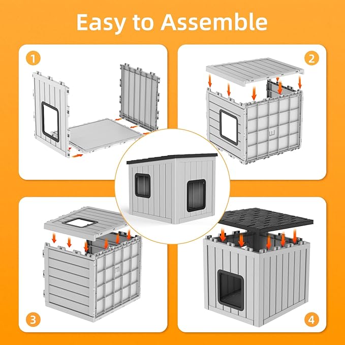 - Elevated Floor & Easy to Clean:The elevated floor design keeps the dog house away from damp ground, ensuring a dry space. The smooth resin surface is easy to cleanβsimply wipe with a cloth to maintain hygiene, ideal for busy pet owners.