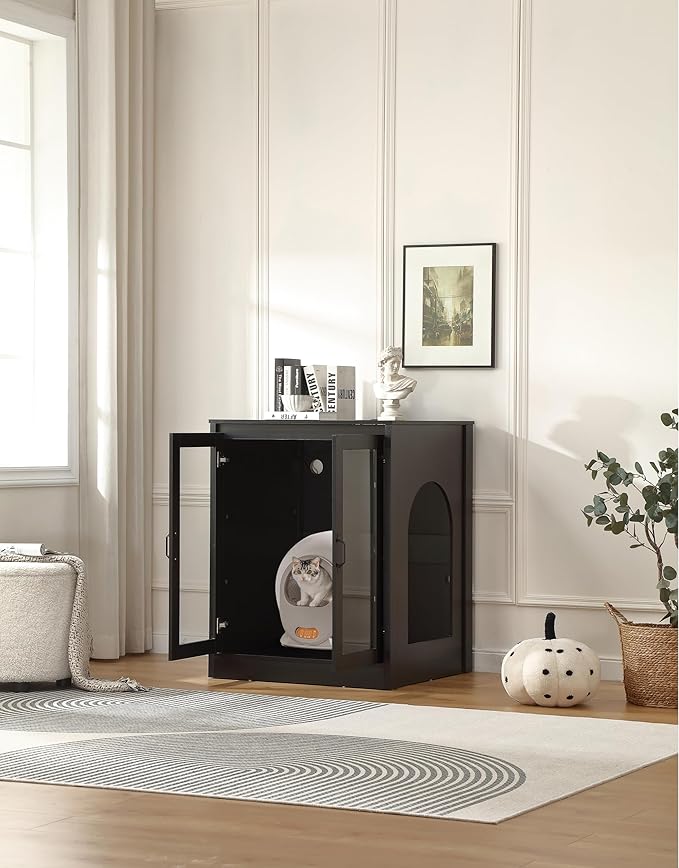 - 2)【Worry-free monitoring with our crystal-clear glass doors】 Observe your cat's activities without disturbing them. The scratch-resistant safety glass provides clear and great visibility while containing litter scatter, creating the perfect balance between privacy for your cat and peace of mind for you.
