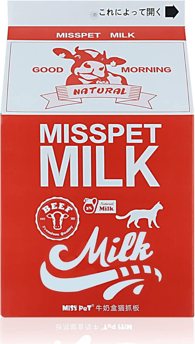 Cat Scratcher Cardboard, Scratching Pad House Bed Furniture Protector, Infinity Shape, Curved (Red, Milk Box)