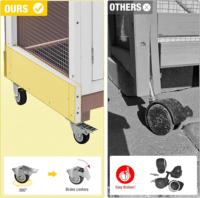 - Easy to Move Around: Four smooth-rolling wheels let you move the hutch indoors or outdoors without heavy lifting, so your pets can enjoy sunshine or shade anytime